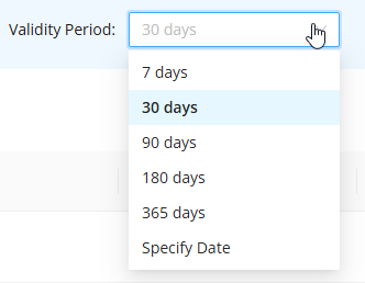 1. Select the period which this token will be valid for (7 days, 30 days, 60 days, etc.);